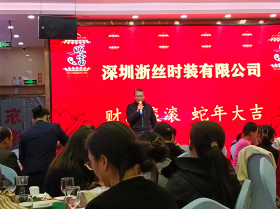 On February 11, 2025, Shenzhen Zhesi Fashion Co., Ltd. successfully held its New Year Gala at the Wangfu Restaurant. During the gala, the Chairman and General Manager briefly reviewed the achievements of the previous year and outlined the work objectives for the next year. The event also featured a lucky draw, fostering a vibrant and festive atmosphere.